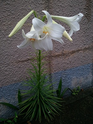 雨が止みました。今にもまた降りだしそうな空ですが、外の空気を吸いたくて家から出てみました。 ご近所のお宅の塀と道路の隙間、幅2cmの土に、立派に咲いている百合。うちの入り口の電柱とコンクリートの箱の間の、わずかな土で生きているローズマリーとタイム・マジックカーペット。こちらはバーベキューの炉の際で、久し振りに咲き始めたジニア。雨が止んだら、いきなり蝉が鳴き出しました。まだ細いジューンベリーの幹で。今日は恵まれない環境で頑張っている「キミたち」を紹介しました。