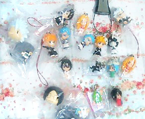 13日公開だった鰤映画、14日に見に行きました。すごい迫力もありましたし、最後のほうはけっこう感動したりで、面白かったです。語りたいところですが、ネタばれ気になる方もいるでしょうから詳しくは言いません。とにかく、鰤好きなら、見て損はないですね!!で、なんかわ~っと波が来て、この一週間で集めた鰤のミニフィギュア系なかなかグリが出なかったんで、何度鰤くじを買いに行ったか(笑)携帯に、好きキャラの一護、グリ、ウルと、ネタ的に大好きなわかめ大使も付けたかったんだけど、すでに犬夜叉もついてるしで、ゴッチャゴチャになったんで諦めました。ので、一護とグリとウルをメモリスティックのコード部分に付けてみましたw