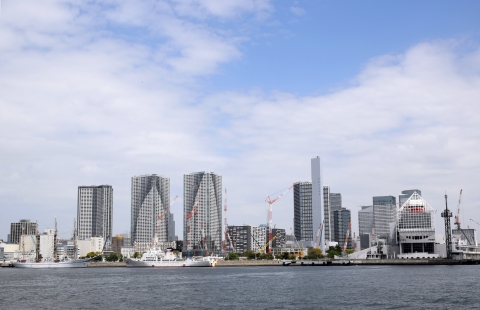 晴海埠頭の南側は豊洲。上の写真では豊洲市場も見えている。