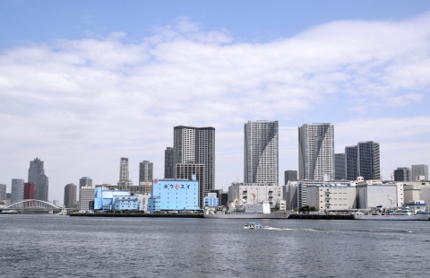 対岸の晴海埠頭を回る形で隅田川河口方面に向かう。