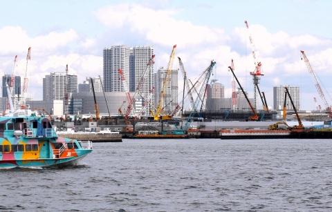 何の工事かな? と思いきや。どうもオリンピックの選手村の工事らしい。