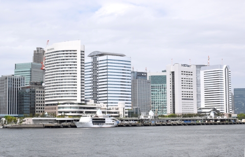 実はあちらは 晴海客船ターミナル。国内外の豪華客船が接岸する東京の海の玄関です。