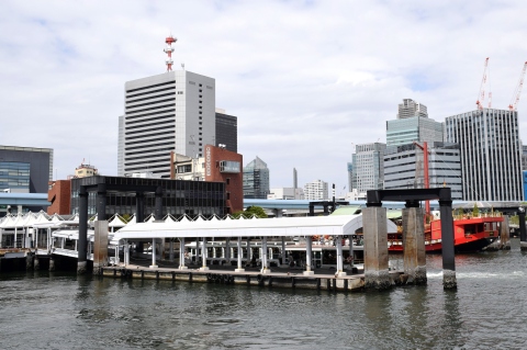 日の出桟橋(日の出埠頭)・・・・ 台場・有明方面への水上バスや東京湾クルーズなどが発着。他に非鉄金属・化学薬品等の内貿もある。