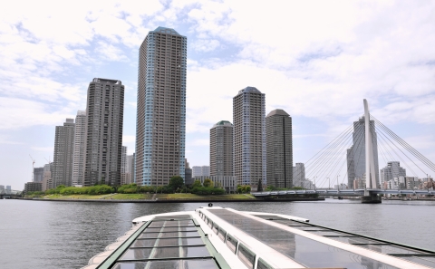 隅田川ラインクルーズは、東京湾のクルーズの中でも、 日の出桟橋から浅草の隅田川公園間を遊覧するもの