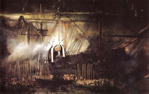 セントヘレナ島から船に積み込まれる棺 ウィキペディアから借りてきました。