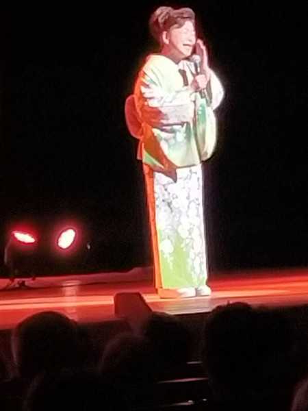 当確かの候補者の選挙事務所の前の大ホールで、チケットをいただき久しぶりの歌謡ショーへ。観客も半分くらいの入りで新曲「歌だよ!人生」ヒット曲「河内男節」などの中村美津子で前歌に4組、落語の三遊亭遊子師匠と賑やかに昭和演歌のパレードで、すっかり敬老会かのような雰囲気のご年配ばかりで前列から2番目の席は初めてかもで、左右11個のカラオケのスピーカ―で、オヒネリやお土産もそれぞれに結構あるもので、遠く歌手の出身地の青森県からも駆けつけておりファンとは本当にありがたきもの。故作曲家船村徹は刑務所を巡回して受刑者を励ましていたが、弟子の女性歌手が後を継いで全国77あり後5箇所と。プロで自分の歌だから歌詞を覚えるのは当然だろうが、今はモニター全盛なので見ながらも多いが役者の長くて多いセリフを覚えるのと同じで、数曲をといつもながら感心しながらの肌寒いナイト。