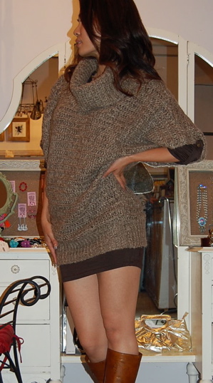 こんにちわ☆LAはここの所肌寒くなってきました。今日のコーディネート半袖ダボニット $62中に着たシャツワンピ $38 こういう大きめのニットの下はスキニーデニム、タイトな超ミニスカートで下のボリュームを小さくするとバランス良くみえると思います