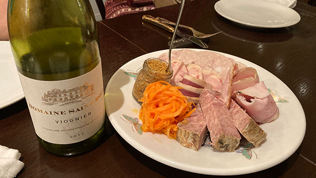 で、ワインはね、ソムリエが「軽くて爽やかなのがいいですか? それとも飲みごたえのあるやつがいいですか?」と言うので、「白で飲みごたえのあるやつ」と注文した。そしたら、 ヴィオニエ VIOGNIER )が出てきたよ。