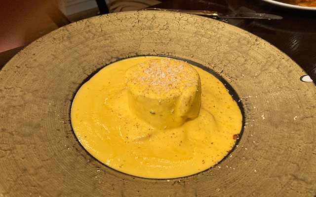 そして、これはウサギ肉の料理でバターチキンカレーっぽいソースがかかっていた。器とソースの色が合ってるよね。実に美味しそう。