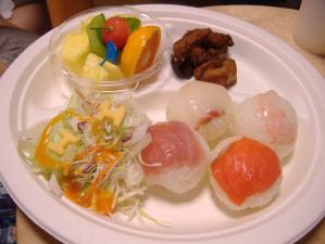 昨日は独身時代からのお友達、takana mama&かなちゃんのお家に娘たちと遊びに行きました♪お昼をメドに、みかにー&ひなちゃんも合流。子供を交えてのこのメンバーで集まるのは、数年ぶり!かなちゃんもひなちゃんもすっかり大きくなって、子供の成長ってほんとに早いですね(^^)では、早速takana mamaが昨夜から仕込みをしてくれてたランチをいただきましょう♪takana mama、ブロガーが2人も来るということで、かなりプレッシャーだったみたいで・・(^^;)ごめんね~、でもせっかくなのでUPさせていただくわよっ!(笑)こちらは子供たちに用意してくれた『*手まり寿司ランチ*』すごい!かわいい~♪よく見ると、一人一人チーズのイニシャルが違うのです。凝ってる~♪パチパチそしてこちらはママたちの中華ランチ♪すごくおいしかったで~す(*^^*)ごちそうさまでした!ランチの後は、子供たちが楽しみにしていた『デコスイーツ教室♪』みんなで自由に、もりもり作りましたよ(^^)これでもほんの一部(^^;)楽しくてい~っぱい作っちゃいました♪もりもり盛っちゃう子、几帳面な子、みんなそれぞれ個性が出てて、かわいかったです(^^)画像はないけど、この後ママたちは『レザーパーツのキーホルダー教室』もしました。イベント盛りだくさん(^^)そして雨も上がったところでお外に出て、ハサミ片手にお楽しみのお土産タイム~!こんな鈴なりトマト、見たことありましぇん~!ナス・トマト・オクラ・ゴーヤ・ピーマン・大根・玉ねぎ・とうもろこし・・・。takana mama家のお庭は、お野菜パラダイスでした(゚〇゚;)子供たちも大はしゃぎ♪と~っても充実した一日でした。takana mamaどうもありがとう(*^^*)とうもろこしが育ったらまた声かけてね(o ̄∇ ̄o)/