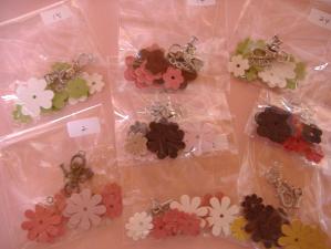 今日は幼稚園ママ対象の第3回目の手作り教室をしました。今日の作品は、レザーパーツで作るキーホルダー。普段カシメを使うことってなかなかないので、この機会にと思い選びました♪材料 *レザーパーツ *カシメ *丸カン *ナスカン 道具 *金づち *打ち具 *打ち板 *革用穴あけパンチ *先細ペンチ レザーパーツもさまざまな色や形があるので、色々なキットを作り、ママたちには公平にクジを引いてもらってお渡ししました♪やはり、皆さん初めてのカシメ打ちに悪戦苦闘(≧≦)まっすぐに打たないと斜めに曲がってしまって・・・コツがいるんですよね(^^;)だけど皆さん、今回は短時間で完成!まるで既製品のようなキーホルダーが出来ました(*^o^*)バッグに付けるアクセサリーとしても、またフックを変えて携帯ストラップにしてもいいですね♪私も次回の手作りイベントに出品しよう~(*゚ー^*)今日は皆さん暑い中、お疲れさまでした!手作り教室はこれで終了ですが、参加していただいた皆さん、ありがとうございました=*^-^*=