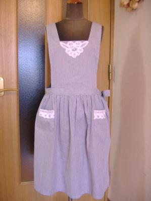 前回の日記に『大人用は~?』のコメントをいただきましたので、あわててUPしました(^^;)ありますよ~、デザインは全然ちがいますが・・・。夏用が欲しくて、爽やか~なイメージで作ってみました♪画像ではわかりにくいですが、細かい紺色のボーダー柄です。左脇だけが開いていて、リボンで結びます。お尻がかくれるので、とっても気に入ってまーす(*^^*)また柄違いで作ろうかな。