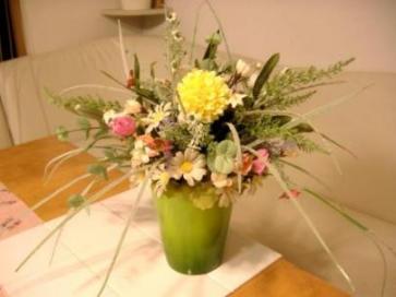 今日は午前中にみかにー&ひなちゃん、takana.mamaが遊びに来てくれました(^o^)/そこでtakana.mamaからいただいたものがこちら~♪造花のフラワーアレンジメント゚・*:.。.☆゚・*:.。.☆takana.mamaの手作りなんです!普通に買ったら結構なお値段しますよね~。手作りだとお手軽価格でできるので(かなり!^^;)、ホコリかぶったり、やけて色あせたりするたびに作り変えて楽しんでいるのだそう・・・。材料のお花も組み合わせのセンスがいるので、すごいですぅ(*≧∇≦*)どうもありがとう♪お部屋が明るくなりました。みかにー&ひなちゃん、今日はゆっくりできなくて残念だったけど、おしゃべりできて楽しかったです♪また是非遊びに来てね!