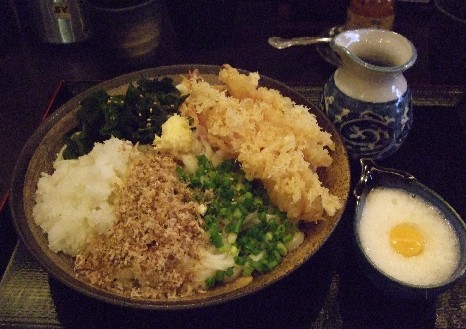 今週の仕事が終わりましたぁ。メチャ低い気温でスタートした今週も昨日辺りからはやけに暖かく。寒くないのは嬉しいけれど気温の変化激しいのは身体には良くないみたい。風邪ひいてる人が多いもんね。気をつけんといけません。でも、これってやっぱ温暖化の影響なんやろうか(+_+)?ここんとこ工場内の違う現場で仕事してるんだけどそこの人との会話で情報入手しさっそく行ってみました。その店の名前は「和舎楽」って麺類主体の店。自家製麺って書かれてるんで自分のとこで麺うってるんでしょうね。場所は仲良くしていただいてる「じゅんみっふぃ嬢」のホームである長与ってところ。ウチからはクルマで30分くらいかかるんでなかなか行かない場所です。時間はちょうどお昼時を過ぎた頃でお客さんは7分目くらいの入りでした。よく見えなかったけど、どうも調理場の方で製麺してるみたい。さっそくカウンターに着席しメニューを見ると・・・うどんと蕎麦をメインにしたお店で麺類の単品もあるけど定食が充実していましたね~(^_^)。実はここにはスペシャルメニューがあるらしくそれを注文したんですが・・・残念ながら売り切れ!遅い時間に行ったのが失敗やったみたいです(T_T)。着席したんで帰る訳にも行かず「和舎楽ぶっかけうどん:880円」なるものを注文しました。温かいのと冷たいのを選択できるみたいで迷わず冷たいのでお願いしました。ここのは麺にコシがあるらしくそれなら冷たい方が味わいやすいかな?なんて思って!そして出てきたのがこれです。ぶっかけの中では最高峰?のメニューなんでトッピングは盛りだくさんやったですね~。「海老天:2」、「ワカメ」、「大根おろし」、「うずらの玉子ととろろ」その他数種。なかなか豊富な種類は見るだけで嬉しくなります(^o^)v。つゆをかけてショウガと具材をかきまわし・・・少し太目の麺をほおばると・・・。一般的に九州のうどんは柔らかいのが定番なんだけどしっかりコシがあります。これはいつぞや行った「とも也」より少し劣るけど噛み応えありますね~。讃岐のうどんに近い感じやったです。柔らかいうどんもいいけどコシが強いのも好き・・・まあ麺類一般好きなんですが(^_^;。食べ出すと意外と量も多くデフォでお腹にちょうどいい具合でした。大盛も出来るみたいだけどかなりの量になるんやろうね(^o^)b。そのうちにスペシャルメニュー食べに行く時にチャレンジしてみようかな。他のお客さんが食べてるのを見ると定食類もボリューム多いみたいで、なかなか嬉しいお店でした。さてさて土日は天気いいみたい!久々に遠出してみようかな~。