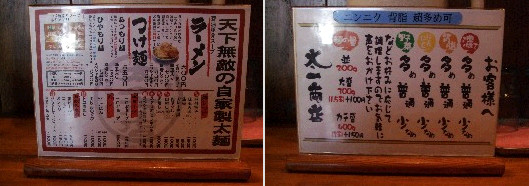 飲み食い三昧で慌しかったお正月も三が日が終わりました。今日はさすがにおかしい胃腸を休めようとゆっくりしています。外は穏やかに晴れて・・・のんびりひなたぼっこでもしようかな(^o^)。ホントは去年のうちに書きたかったんだけど時間的に厳しく書けなかった「食べ納め」の記事を。旅の初日はまあまあの天気。朝暗いうちに家を出て大分行きのバスに乗り込みます。この日は年末の日曜日・・・高速道路の渋滞が心配だったんだけどスムーズにバスは走りました。年末は高速道路の割引対象外になってて・・・やっぱあの割引は大きいのかな?バスはほぼ定刻に大分に到着。さっそく路線バスに乗換えます。このパターンは三回目なんで慣れたもんですね(^_^)v。20分ほどバスに乗り着いたのは・・・「太一商店」ってところです。これが今年最後の旅の初日のガッツリ系になります。ちょうどお昼時なんで店の前には少しの行列が出来てたけど家族連ればかりで一人のボクはカウンターにすぐ座ることが出来ました。注文したのは「ラーメン豚増し+カチ盛り(400g)=1050円」です。ここは注文時にトッピングも聞かれるシステムで・・・野菜はもちろん多め。ニンニクはバスの旅ってことで少なめでお願いしました。そして出てきたのはこれです。既にスープの決壊を予想して皿の上に乗せられ出てきたものはキャベツの含有率高い盛りでした。ブタは相変わらず嬉しいツヤを出しています(^o^)/。食べ出すと少しゴワっとした麺がスープにからまり美味いですね。ニンニク溶かすともっと美味しさアップするんだろうけど仕方ないっす(T_T)。ブタはやっぱここのは秀逸ですね~。全てトロ~ッと溶ける感じ。ただ、ちょっと前と比べると小さくなった気がするんだけど記憶違いかな?ガツガツと食べ進んで楽に完食しましたぁ。しっかしいつも思うんだけど400gって麺の量はキツい筈なんだけどここのは楽に食べきれるんですよね~。麺の水分の量なんてとこに違いがあるのかしら?丼の形状も大きくないしね!?ってことで旅の一食目終了です。ひょっとしたらの渋滞?ってのが気になって一つ早いバスの空席聞いてみたけど満席(>_