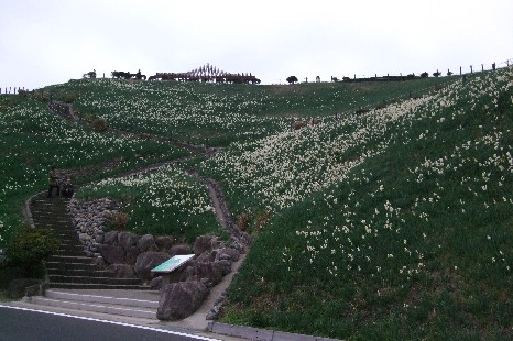 三連休がもうすぐ終わろうとしています。今回の休みは寒くはなかったんですが天候かんばしくなく晴れなかったですね~。まあ、今週にはイベントあるし、来週からは出張も控えてるんで静かに過ごしました。いろいろとあるにはあったんですがそれはそのうちに・・・(^o^;。今日は朝から雨が混じる天気でした。行こうかどうしようか?ちょっと考えたけど行っちゃうことに。なんてったって毎年この時期には必ずそこを訪れてるんですぅ。「ブリ助♂」で小雨の中を向かったのは野母崎ってところです。長崎市のず~っと南の半島の先端です。今はここも長崎市になってるみたいですが違和感あるよな~。ここに来た目的は・・・「水仙」を見ることなんですぅ。ちょうど今の時期になると「水仙の里公園」ってところに植えられた水仙が花開くんです。その数なんと1000万本らしい、それに併せて「水仙まつり」ってのも開催されてます。長崎市内はそれほどでもなかった風もこの海に面した公園には強い西からの風が吹きつけ寒かったですね~(>_