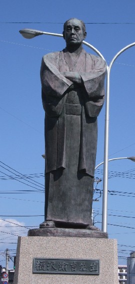 駅のすぐ近くには福沢諭吉の大きな像がありました。