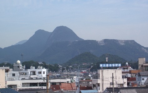 一の岳は、その中腹から上が、みにくく切りとられて、牡蠣色の地肌が残酷な感じで露出している。山麓のセメント工場が、原石をとるために数十年にわたって頂上から休まずに削りつづけた結果である。