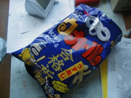 1月22日、いよいよ私立併願校の受験が始まります。はぁ・・・・、とうとう来てしまいましたよ(何まぁ、今さらしみじみしても、しょうがないんですけどww来週は私立推薦&都立推薦など、受験イベントが盛り沢山です。ところで、母さんがこんな物を買ってきたんですが・・・・ ・・・・・・・・ウカール・・・・。果たして効果はあるのか?と思いながら食べてますww推薦で受かればいいなぁ・・・・。