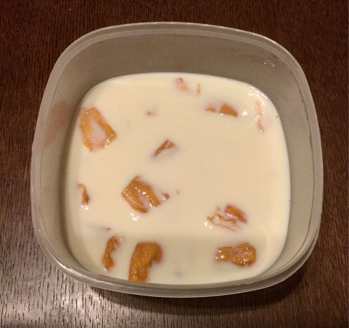 マンゴーが豆乳の水分を吸って柔らかく戻り、