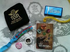 10周年のTシャツ,リストバンドとタイムテーブル,缶バッチ&ライター。今年のリスバンは水色で、山やドクロなんかが描かれててポップでカワイーの♪街中で、腰にぶらさげたり、携帯ストラップにして使ってる人けっこー見掛けるんだ。ナイス!!と思いつつ、なくしたらイヤだし、もったいなくてマネできない。缶バッチはte',さわおしゃん,CLUBKING,スチャダラ&電グル,フラカン。全部は写ってないけど、他にDJなんとかや、よーわからんのもゲットしたじょ。やっぱ凛時雨も欲しかったなぁ。びーくるのはついぞお目にかかれなかったし。エクスチェンジで、ぴろのバンビバッチねだったら、これはダメって言われてさ~無念。でもかわりにte'のバッチただでもらったり。どんだけガチャってんだ?っつー人もいたな。(笑)音楽以外でも楽しめるのがライジングのいいところ。飯も美味いしね~。 夢のような3日間が終わっても、部屋に飾って眺めては思い出に浸る。そーいえば、こんなことあったっけな~なんて記憶が蘇ったり。愛おしい時間の欠片達。ライジングであったこと全部、完パケにしていつでも好きな時に追体験できたらいいのに。神様、人の頭にはそーゆー機能ないんですか?誰か、そーゆー装置発明してください!!