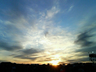 11時半過ぎに家を出て、だいたい1時過ぎに現地到着。入場待ちなしですんなりとゲートをくぐる。天気は晴れ。青空と雲と広がる大地。ん?なんとなく牧場の匂いが漂ってくる・・・臭っ。(笑)昨日は雨でほとんど写真撮れなかった分、ここぞとばかりあちこちパシャパシャ写しまくる。 まだ時間あるから大丈夫かと思い、余裕ぶっこいてたら、クリスタルパレス横に既に行列がっ!!やべぇーー規制かかってるやんかーーっ!!もう並ぶのはイヤじゃ~入れなかったらどうしよう?イライラ焦りながら待つ。なんとか滑り込みセーフ。ステージから一番近い席でゆったりまったり。クリスタルパレスの中はまるでサーカス小屋みたい。バーもあって飲みながら観れる。オサレ!ギリギリで入ったせいで買いに行く暇がなかったんで、ぴろっこさんのビールを飲ませてもらう。こんな特等席で仲間達と一緒に観れるなんて幸せ~朝から陣取ってくれてたジェニたんサンキュ☆メトロノームのネジギコギコ回しながら、立って歌ったり座って歌ったり大忙しのさわおしゃん。このメトロは赤ちゃんの睡眠効果があって、これを使って練習してたらシンちゃんが・・・「おっさんも寝るんだ!!」むっちゃウケた~~でもシンちゃん、赤ちゃんみたいだからね。(笑)ちょうどサンステから曲が流れてきて「えっ?これモンパチ?モンパチ行かないでこっち来てんの?」「お前ら、バカじゃないの?」だって。はいっ、そーです、みんなバカなんでぇ~す。(笑)『白い夏と緑の自転車 赤い髪と黒いギター』 この曲聴けただけで感無量なのに、最後の1曲。ツアー中に長崎で作ったってゆー20周年にふさわしいあの新曲に、全部もってかれました。すごすぎるよ~~もうもうもうっ!!かっこよすぎて、ぐっとくる歌詞が多すぎて涙ボロボロ。さわおしゃんとじゃスケール違いすぎて全く比べ物にならないけど、誰の人生だって山あり谷あり、皆それぞれ、いろんな思いを抱えて、全て乗り越えてやっとここまできて、今この場所に立ってる。アタシだってここまでこれた。ここはまだ通過点でしかないけど、少しは誇れる自分になれたかな?そんなこと考えながら聴いてたんだ。この同じ瞬間を分かちあえる仲間がいることに感謝しながら。ジェニたん、ぴろっこさん、そのお友達のさわおフリークさん。後ろで観てたAmyさんも。お初な人もいるけど、そこは同じ音楽好き(バカ)同士、既にアタシの中では大切な仲間なのだ♪ 夜のクリスタルパレスさて、びーくる。こないだ観たばっかだし、途中抜けするんで、レジャーサイト通路でゆるーく。『TIME FLIES,EVERYTHING GOES』 『HIT IN THE USA』 と続き、早くもあのコールがっ!!やべぇっ、ここじゃ叫べん!!なーんてね。もうおもっきしでかい声だして叫んでみました。やっぱそこはいちファンとして、おさえとかないと。んもーー恥もへったくれもねぇわ。(爆)『ISOLATIONS』 『CHINESE JET SET』 『DAY AFTER DAY』で暴れた後、急いでアースへGO!!あとでブッチャーズの人が出てきたって聞かされて、もしかして 『SUMMER END』 やった?ガーン。聴きたかったかもぉ、泣きのギター。あ、マシータ男のコだったんだね。おめでとうゴザイマス♪♪ 『DISCO FLIGHT』 聴きながら全力疾走!!思った以上に人がいる。つーか、テントから溢れてる。こんなに人気あったんだ??凛として時雨。とにかく行けるところまで前へ。あっ、TK歌ってる。基本的に女子がいるバンドは好きじゃないし男子のハイトーンも苦手。←すまん、ただの偏見じゃ。なのに、何故こんなにも惹かれるんだろう??破滅的なとこや、爆音+叫び系が好きだから?はじめて聴いた時、曲はすげぇいいのにボーカルの声でこりゃダメだと思った。それなのに・・・慣れって怖いッスね。やみつきになっちゃうんだもん。やっぱこの前の春のライブ行っとくんだった。『Telecastic fake show』むっちゃかっこよかったわぁ。あとね、ラストの 『傍観』 はすごかった。♪僕は汚い~僕は消えたい~ そしてTKの絶叫。あんだけ力の限り叫べたら気持ちいいだろうな。ホントはさ、皆、叫びたいことがあって、でもそんな場もなくて、ただ力だけがあり余ってて。だから自分の代弁者としてステージで叫ぶ姿を見て羨ましかったり共感したり。なのかなー?それはともかく!!なんたってドラムがかっけぇんだわ。惚れました。近くで観たかったよーう。最近、んっとに太鼓にはまってる。ちひろにtachibana氏に、そしてピエールまで。ああ、素敵だ。 時雨の後は飯タイム。ジェニたんとふたりでレッドスター&グリーンオアシスまで遠征。ライジング丼とゆー名のジンギスカン丼を食す。あ~~うめぇ~~ほんと道産子でよかった。ブラブラしてたら、グリーンオアシスからかっけぇ音楽流れてて、なにかと思ったらVOLAだった!!おお~~っ、アヒト観たかったんよ~~♪♪つうわけで、後ろの方でかるーく踊る。いいかんじ。そう!ここでなーんとte'のマサ氏に遭遇!!メガネかけてないし、確信はもてないんだけど・・・だってさ、アンプT着て