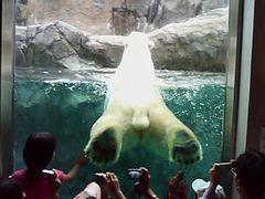 ちょっくら旭山動物園へ。天気もよく、なかなかの動物園日和。とにかくシロクマのもぐもぐタイムが可愛かったの~(≧▽≦)でもって、こーんな素晴らしいショットが撮れちゃったのでした。 ガラス窓に後ろ足を押付けてふんばりポーズ。大きな肉球がラブリー☆いつもはネコ派だけど、すーっかりシロクマにヤラレちゃいました。あーーギュッて抱きつきてぇーー。