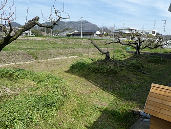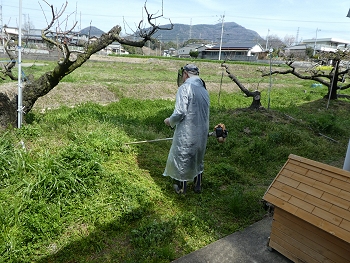 薄着にしていても,カッパの下は汗びっしょり。下・上・裏,ついでに梨などの果樹や植木にも。(殺菌剤ですから)「もうやめよう」と思っていたのですが,「裏の畑」が草ぼうぼう!汗びっしょりのついでに草刈り。