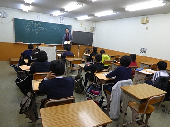 さて,今日の授業は,本館の小6から。第1部テキストの復習テストから。テスト後は授業。203教室。