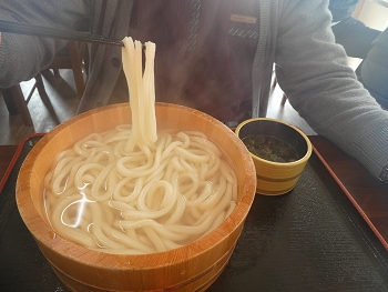 3号館へ帰る途中に麺ちゃんで「釜揚げ」。本当は「冷たいうどん」の予定だったのに!