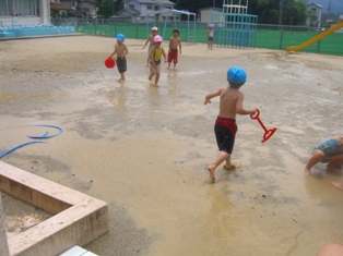 子どもたちが待ちに待った泥んこ遊びがはじまりました。