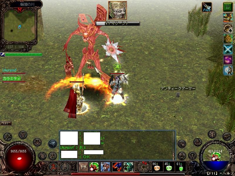 やっちゃいましたΣ(・ω・`)まぁ、よくあるねたですがね。まぁ、ついでに昨日クロノスにInして葡萄鎧+9をたたきましたΣ(・ω・`)某ギルメンさんにみまもってもらいつつたたいたけど消えました(´・ω・`)ショボーンまぁ、2個目できたら完全体もってないギルメンに成長でもと思ってたけど夢ははかなく消えました(´・ω・`)ショボーンぁ、もしできてても富豪のまぼろしさんにはあげませんよ^-^ってか、逆にください^-^