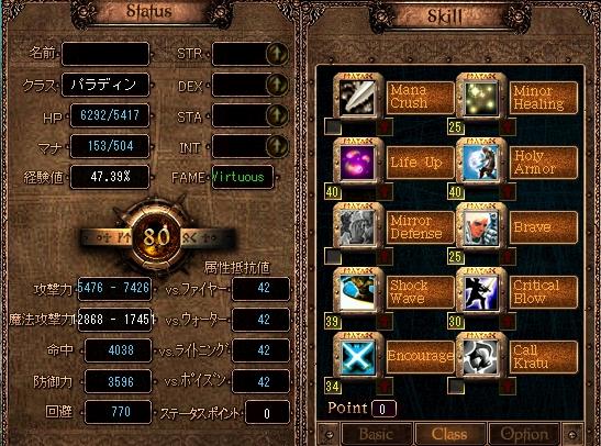 ハイコンニチワΣ(・ω・`)ノ今朝普通に目覚ましセットするの忘れてて、おきたらいつも家を出る4分前だったエルΣ(・ω・`)です。まぁ、顔洗って歯磨いて服着替えて駅まで走ったらなんとか間に合いました。最近…いや前からなんだけど駅まで10~12分ってきつすぎ。さて、リアルの愚痴は置いといてようやくパラが84になりました。早速忘却を使ってクリブロを下げSLWを打てるようにいやぁ、SLW使ってるのを見てると攻撃範囲広いなぁと思っていましたが、実際に使うと想像以上の範囲ですねΣ(・ω・`)見えている画面の範囲には大体届くし、もうね…感動しましたとりあえずヲリの弟子にうてるようになったと城の外で撃って見せると弟子「おー、おぼろくるーくだ^^」さすが我が弟子ですw華麗にSLWは華麗にスルーしてくれました(´・ω・`)これじゃ、ヲリで寄生しますねっていわれてもお断りだっていいたくなりますね^^まぁ、別にいいですけどね。ヲリと2人狩りかなり楽なんで…( ´_ゝ`)パートナーが成長か芋か里もってて少しぐらいタゲとってくれれば。とりあえず現状こんな感じです。ヲリは弟子がちょっとがんばってるので挨拶で少しは経験値が入るようにギルハンに参加してきましたΣ(・ω・`)が、フレにいきすぎてエンタのまずさがどうも耐えられませんwってことでやっぱりヲリは基本的に裸の知り合いとPt組む、またはマタリ以外には動かさない事に決めましたっとw2~3人マタリなら付き合いますよっと裸とか肥ではヲリとバルでやってるらしいけど、私の火力じゃ2人は無理かなwとりあえず忘却欲しいんで、3人マタリ誘ってくださいねっとヽ( ´ー`)/