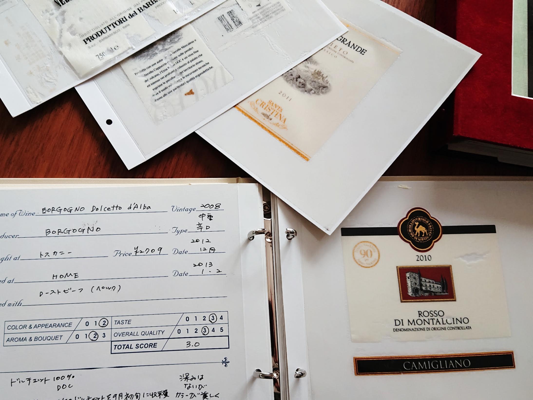 こんにちは。桜はもう咲いているのにとっても寒い。新元号も発表されたりと、記憶に残る春になりそうです。おうちでワインを飲んだらラベルは取っておきますか?皆さんどうされているのでしょう。全てというわけではないのですが、メモ代わりに取っておくことが多いです。あまりタイプでなかったものは特に残すようにしています。でないとまた同じ失敗を繰り返しかねませんので...。美味しかったものはもちろん。最初の印象、お料理は何を合わせたか、カラーなどは私にとって重要性が高いので忘れないように記入するようにしています。それを二穴の専用バインダーへ。外でいただいた時もどこで誰と飲んだかわかりますし、その時何を着ていたかなど記憶がよみがえる事もあります。まるで思い出アルバムのよう。毎回エチケットをシートに貼って下さるお店もあれば、シートを置いていないお店もあります。初めてのお店や、カジュアルなお店などへ行くときはラベルシートをあらかじめ用意して行くときもあります。かさばるものではないですし、ソムリエナイフさえお借りできれば自分で剥がせますし、一言お店の方に声を掛ければだいたいのお店はどうぞと言って下さいます。写メ撮っていいですか?と同じ感じでしょうか。そのバインダーも約10年で4冊になりました。気分を変えるために色を変えているのですが、そんなにカラーバリエーションがなく、二巡目に入りそうだなと思っていて見つけたのが、シンプルなコルク素材タイプのもの。【smtb-T】ワインラベル メモリー バインダー コルク(CORK)ZW900CO価格:1512円(税込、送料別) (2019/4/3時点)楽天で購入次の一冊はこれに決定です。