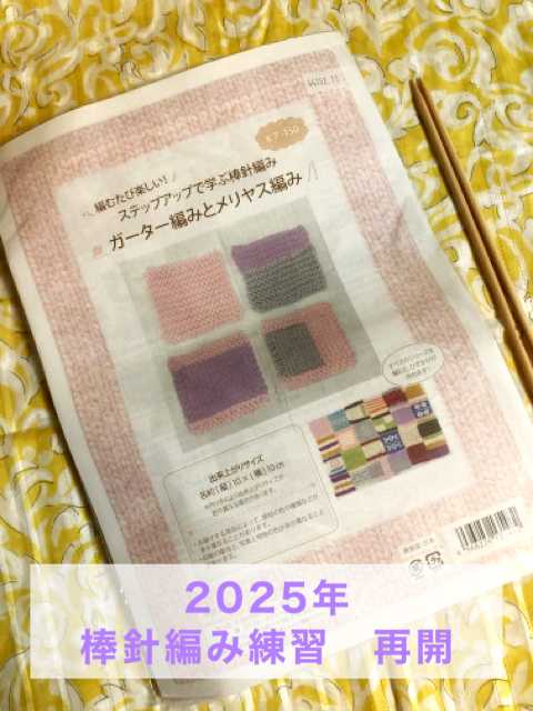 10月に入り、朝晩寒くなってきた今日この頃。縫い物の作業中作品が片付いてきたので、夜、寝る前に、初歩のガーター編みから棒針編みの練習をする事にしました。昨年作成したものは、不慣れで形が歪んでいたりしたので、アクリル毛糸だった事もあり、掃除用タワシに転用しました。★手芸ナカムラさんで購入しました。手芸キットステップアップで学ぶ棒針編みガーター編みとメリヤス編み(編むたび楽しい!)棒針編みは、まだ、輪針も使いこなせないしとにかく自信が無いので、(最終目から段を変える時、糸の掛け方が間違っていたようで間違えて解く時、スムーズに解けず、引っかかった点など)公文式方式で、何も見なくても迷いなく間違いなく編めるまで繰り返し作業して覚えていきます。現在の当座の目標は、超初心者なので、お気に入りのウール生地で沢山作成して、膝掛けが作れるレベル。(なかなか靴下に辿り着けませんが、、付属のアクリル糸は、タワシ作りに転用します。★2025現在、各種330円の棒針編みキット手芸キットステップアップで学ぶ棒針編みかのこ編みで作る模様編み(編むたび楽しい!)手芸キットステップアップで学ぶ棒針編み編み込み模様とすべり目(編むたび楽しい!)在庫処分手芸キットステップアップで習得する初めての棒針編みコレクション市松模様&ボーダー手芸キットステップアップで学ぶ棒針編み編み込み模様とステッチ(編むたび楽しい!)★輪針の本輪針の本 輪に編む、平らに編む ~テクニック&小物 [ 河合真弓 ]