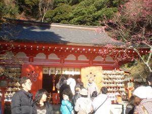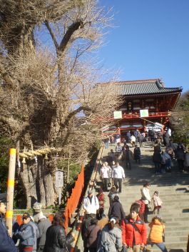 温かい日差しを浴びながら鶴岡八幡宮から荏柄神社への道をのんびり歩いた。横浜国大付属中の横を通り、すぐに華麗な朱色の壁と梅の家紋がかわいらしい荏柄天神社に着いた。樹齢900年の大銀杏が脇に陣取り、早くも紅梅が咲いている。菅原道真をお祭りしてあり、受験生らしき家族が合格祈願に来ていた。 さらに足を伸ばして鎌倉宮を訪れた。入り口では骨董市が開かれていて古い食器や年代ものの着物等が売りに出されている。鎌倉宮は大塔宮とも言われ護良親王が幽閉されていた土牢が裏側にある。鎌倉宮と言うと薪能である。私が薪能を知ったのはこの地に住んだ立原正秋の小説の中である。それまで能は知っていたが薪能については全く知らなかった。35年ほど前の話である。その後薪能もあちこちで演能されるようになり何度も観たが、鎌倉宮の薪能を観たことがない。社務所でチケットを申し込む場所などについて情報を仕入れた。 鎌倉宮から更に歩いて瑞泉寺まで足を伸ばした。花の寺なので蝋梅、梅、水仙などを期待して行ったが期待はずれだった。水仙は咲いていたが梅はつぼみが固く、やっとみつまたが小さく咲いていた。梅の古木が多い庭園はすばらしかったが冬枯れて寂しかった。 さまざまな文学者の碑が園内に建てられていた。心に残った一碑。 死をいとい 生をもおそれ 人間の ゆれ定まらぬ こころ知るのみ 吉野 秀雄引き返して入り口まで出た。ここから右に鎌倉アルプスに行くルートがある。低い山というより丘だが鎌倉が一望できる。数年前雪の日に軽アイゼンつけて歩いた記憶がある。さらに歩いて石段を登り杉本寺に行った。 鎌倉最古の寺である。本堂で十一面観音像を拝んだ。しかし堂内が薄暗くてあまり見えないのがとっても残念だった。外には鐘楼と五輪塔、無縁仏があった。 寺を訪ねるのはここで終わりにした。道路が大渋滞でバスも進めそうにもなかったので鎌倉駅まで歩いて出た。駅周辺は大混雑で人が溢れている。鳩サブレーを土産にしようと思っていたが、その行列を見て気が変わり電車に直行。寒牡丹に美術館に古刹めぐりととっても充実した鎌倉の一日だった。