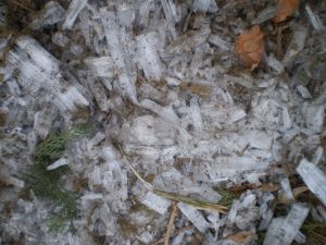 今日も穏やかで風もなく、午後はやや曇ったもののいい一日だった。棒の嶺(棒の折山)にハイキングに行った。いつもは青梅線川井駅から入るのだが今日は軍畑から高水山、岩茸石山・黒岳、ごんじり峠と縦走するルートにした。朝の冷たく澄んだ空気をいっぱい吸い、熊よけの鈴を小さく響かせながら一人歩いた。霜柱があちこちにできていたが低温のため固く立っていた。高水山、岩茸石山とピークを踏み、そこから黒山への急坂を膝にこないよう丁寧に下った。 結晶のような固い霜柱 岩茸石山から遠望する棒の嶺 距離が長く起伏に富んだ道だったが雑木林の中、登山者にも会わず鳥も鳴かず風も吹かず実に静かな思索の山旅になった。黒山の大きな木に珍しいものを発見した。平成20年 熊野修験 奉修行武蔵野国黒山入峯天下泰平如意祈○ 九月吉祥日 那智山斉岸渡寺 という字が読める。はるか那智の斉岸渡寺からここまで修験僧が修行に来たのだろうか。同じものを棒の嶺山頂でも見た。身が引き締まる気がした。 熊野修験のお札 棒の嶺直下の雪 黒山からごんじり峠を越えるとすぐに雪の林になった。ひと登りで棒の嶺山頂にでた。平らなカヤトの頂だった。地面には雪があったが、日の光が溢れ、誰もおらず、沈黙に満ちていた。私一人で山頂を独り占めした。カヤトのかなたに飯能市・入間市が果てしなく広がり、遠くには新宿の高層ビル、さらに武甲山をはじめとして奥武蔵の山々が青空にくっきりと姿を見せていた。嬉しかった。知人に出会った気持ちだった。 奥武蔵の山々 かなたに広がる飯能市・入間市 心ゆくまで陽光を体にチャージし、景色を楽しんで下山した。途中わさび田がたくさんあり時々白い花も咲いていた。上日向まで下ったがバスが全くなく川井駅まで歩いた。 陽光あふれ誰もいない山頂 わさび田アスファルトの道を歩くのは苦痛だったが、時たま出会う村人が「こんにちは」と言ってくれるのに慰められた。冬枯れの静かな山旅が終わった。