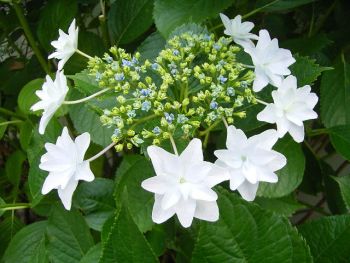 4月以来、町会費、社会福祉協議会費、日本赤十字寄付金、キラット祭り協賛金と4回の集金があり、各班の班長さんからの集金がやっと揃った。会計担当のお宅へ集金を届けに行った。お金の受け渡しが無事終了してほっとしていたら「スミダノハナビを持って行きませんか」と言われて耳を疑った。スミダノハナビって墨田の花火?それを持っていく?!?その会計の女性は花バサミで庭先に咲いている枝を切っていた。葉があじさいである。「墨田の花火というアジサイですね。」「よく着きますよ」 お礼を言って帰宅した。自宅で落ち着いてよく見ると薄紫がかった白い花弁が上品な八重咲きの額あじさいである。名前の通り花火のようにとびでた花姿で美しい。 我が家はハイドランジアという大きな花が咲く西洋あじさいがあるがこんな優雅な名前と繊細な花を持つあじさいはない。何とか庭に根着くよう試みよう。 優雅なあじさい 墨田の花火