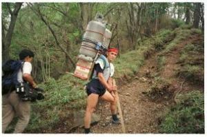 かねてから丹沢の一角にある鍋割山に登ってみたいと思っていた。理由の一つはこの小屋はすべて小屋主の草野さんがボッカで荷物を運んでいてその最高重量は114キロ、さらにその草野さんと私は同じ大学で同時代に在籍していたことを知ったからである。 ボッカ中の草野さん(HPより)三連休で丹沢は人が一杯だろうけど鍋割山はちょっと少ないだろう、天気は曇りで暑くないし今日がチャンスと出かけた。ルートは大倉→二股→後沢乗越→鍋割山→鍋割山稜→小丸尾根→二股→大倉にした。二股までは林道だったが地面の道でけっこうよかったし、山道も穏やかで緑に溢れていた。登山道はとてもよく手入れされていて、気持ちよく歩けた。 里から見る丹沢の山波 杉の美林の中を登る 鍋割山荘はいかにも手造りという雰囲気で何枚もの太陽光発電のパネルが青く光っていた。山頂は平で広々としており緑の芝生が広がっていた。到着した昼頃は丁度ガスって展望はほとんどなかったが、この当たりの景色は沢山見ているし全く気にしなかった。 鍋割山荘 広々とした山頂で寛ぐ登山者名物の鍋焼きうどんを注文した。「Hさーん」と呼ばれてうどんを頂きに行った時、草野さんと話をした。草野さんは山岳部、私はオーケストラ部で部室が接近していてその辺りですれ違っていたかもねというような話をした。 鍋焼きうどん 980円鍋焼きうどんはとってもおいしかった。卵、なると、油揚げ、しいたけ、えのきなど具沢山でうす味、体も温まった。これらすべて草野さんが運び上げたものだと思うと感謝と畏敬の念でいっぱいだった。