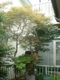 兼ねてより狭い庭に木が生い茂り、お隣に迷惑をかけていた。そんな折も折、お隣のご主人から「うちの方に延びている枝をベランダの上から切ってもいいですか」と言われてしまった。お隣にそんな手間をかけさせる訳にはいかない。一昨日ついに電動のチェンソーを買ってきた。そして梅雨の晴れ間を見て今日、長男・長女を動員して伐採作業をした。 チェンソーの音を響かせて伐採中 伐採後 チェンソー切れる、切れる!!。チェンソーのすごい威力!!どうしてもっと早くこの道具を買うことを思いつかなかったんだろう。感動するくらいガンガン切れた。(切るのはもち、長男)さざんか、イチョウ、金木犀の幹を切って今日のところは終わりにした。金木犀は昨秋にも鋸で伐採したが、その後成長して葉も繁茂し、大木になっていててこずった。伐採した幹は更にゴミとして出せるよう短く切り揃えて束ねた。疲れたが兼ねてよりの心配事が朝一の仕事で終了しほっと一安心。子どもたちにピザをご馳走し、労をねぎらった。
