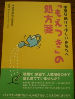 オーバーワークでQOLが下がり、対人関係にも疲れて元気のない娘のために親友のソーシャルワーカーから本を借りた。 水澤都加佐さんとBe!編集部の「もえつき」の処方箋~本当は助けてほしいあなたへ~である。 簡潔に要点がまとまっていて大変読みやすかった。一読して思い当たることがたくさんあった。私自身はもうこれから燃え尽き症候群(バーンアウト)になることはないが、就職3年目の娘は環境的にもハイリスクの真っ只中にある。 以下はこの本からの抜粋や引用です。仕事をバリバリとなさっている方、働き盛りの方の参考になれば幸いです。もえつきのリスクが高いのは医療・福祉・教育の専門職やボランティアなどの援助職、家族を介護している人、うまくいかない子育てに悩んでいる人、家庭内の問題に悩んでいる人、上司と部下の板ばさみになっている人、がんばり屋の人などに多い。バーンアウトの「症状」は、休みをとっても改善しない心身の消耗感、自分の価値や仕事の能力への疑念、変化への抵抗、ちょっとしたことへの過敏な反応、周囲への怒りや恨み、対人関係の苦痛、などがあげられる。こうした状態が起きるリスクが高いのは以下の3つの条件が重なった時である。1 手を抜けない大変な状態が続く2 いくらがんばっても報われない3 使命感や責任感、思い入れが強い当然ながら、適当でいいやとドライに割り切って仕事をする人よりも、その仕事に意義を感じて一生けんめいになり、かつ限界になってもがんばってしまう力のある人が、燃え尽きに陥るリスクが高いということになる。特に援助の仕事は、もともと使命感や責任感あってこそ成り立つものである。つまりこの分野においては、仕事への意欲が高い人ほど燃え尽きのリスクが高いのである。誰かの面倒ばかりみて、自分を忘れて没頭するうちに自分をかけたはずの仕事につぶされてしまう、 職場で、家庭で、人間関係の中で疲れ果ててしまう、 誰かの役に立ちたいとがんばっているうちに、いつしか自分自身が消耗し、人と関わることが苦痛になって仕事に行けなくなってしまう・・・。極度に進行した<もえつき>は、人生そのものを破壊してしまうという。これを読んだ娘は思い当たることばかりで怖いと言っていた。しかしまた、些細なことに対しても激しく叱責する上司に対して今まで不信感を抱いていたが「ひょっとしたらこの人もバーンアウトになりつつあるのでは?}という見方ができるようになったとも言う。この本には<もえつき>の進行をくいとめる方法や共依存・グリーフについての記載もされていてとても有用である。真面目で責任感があり人のために身を削って働く人がうつ病になったり燃え尽きたりするこの悲しい現代社会・・・。何とかならないものか。いや、何とかしなきゃ!!