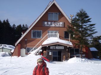 2月12日、岳友エーデルワイスさんと北八つにスノーハイキングに出かけた。天気は快晴、渋の湯で沢山の下山者とすれ違いながら今夜の宿高見石にむけて歩いた。風も無く雪は締まってアイゼンがよく効き、コンディションは上々だった。この日、このルートで登ったのは私たち二人だけだった。全山貸切状態である。 入山口 渋の湯 賽の川原北八つ独特の針葉樹の細道を汗をかかないようのんびり2時間弱歩くと高見石小屋に到着した。夏とは全く赴きが変わって雪一色である。周辺の樹林が輝いて美しい。 高見石小屋昨秋9月の八ヶ岳南北縦走の時、とても親切にしてくれた小屋番さんと再会。「また来ます」と行って帰ったが、まさか本当にまた来るとは彼も思ってなかっただろう。 すぐ小屋にザックを預け、アイゼンを着けたまま白駒池へ散歩に行った。けっこう急な雪道を軽快に一下りすると全面凍結した白駒池湖畔に出る。思わず「すご~い」と二人で歓声を上げる。池の上をストックで表面の凍結を確認しながら氷上を歩いて対岸に渡る。初めての池渡りでワクワクし、エーデルワイズさんとはしゃいでしまった。 白駒湖畔に立つ白駒荘や青苔荘もシックな姿を見せていたが、休業中だった。氷上散歩を楽しんだら、また登り返して小屋に戻り、高見石に登った。 長いツララと雪の高見石石の表面に赤いスプレーで○をつけた夏の高見石も今は真っ白な雪に覆われて、岩場でなく普通の雪道のトレースがついていて楽だった。そこのピークに上がると360度の展望が開けていて青い空に白い山が清清しかった。浅間山がどっしりした姿を見せていた。 凍結した白駒池 先ほど氷上散歩をした白駒池全景が見えた。小屋番の青年によると池は全面凍結していて、自動車が乗っても大丈夫らしい。昔はここで近隣の児童生徒がスケートの練習をしたという。すばらしい自然環境を教育に生かしていた訳だ。ここでスケートできたら最高だ。