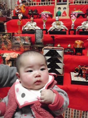2月26日1週早いひな祭りのお祝いをした。あいにくの雨の日になってしまったが、都内から娘夫婦が孫を伴って我が家に来た。孫の葵ちゃんははちきれそうにぴちぴちに太っている。手首のくびれが見えないし、指の1本1本が関節から盛り上がってお餅が膨れたように丸々になっている。肌がとっても滑らかでうらやましい張りである。ほっぺを押しても引っ込まない。娘もそうだったなあ。しばらく見ない間に顔も変わっている。前日に買い物に行ってささやかなパーティの準備を整えていたので、5人で昼食を楽しんだ。早くモノが言える様にならないかなと思う。 この子と会話ができるようになったらどんなに楽しいだろう。この子にどんなおいしいものをご馳走しよう。楽しい想像が膨らんだ。