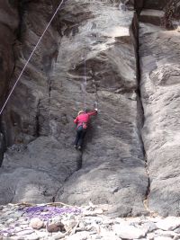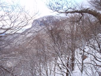 2月26日伊豆大仁の岩場・城山へクライミングに出かけた。久しぶりに新幹線に乗った。やはり早かった。城山に着くと水の染み出しで岩場が帯状に濡れている。その状態でも勇猛果敢に登っている人もいる。しばらく様子を見ようということになった。しかし降ったり止んだりで全くらちがあかない。参加者人数の関係もあっておいそれと都内のジムに転戦ということも無理。結局クライミングはできず、みんな行ったことがないというので城山のハイキングコースを歩いた。山頂から反対側に回ってワイルドボアゴルジュに下ると難しそうなルートを何人ものクライマーが取り付いていた。私たちはいつも下部のやさしいルートしかやってないので城山の岩場全体が俯瞰できてよかった。早々と終わりにして城ヶ崎の民宿に向かった。 濡れた岩場を登るクライマー