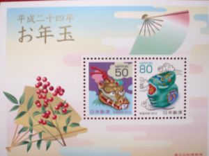 年賀はがきが当たっているかどうかを調べるのはけっこう面倒くさい。遊びに忙しくほったらかしにしておいて初夏の頃、交換した年もあった。今年は当選番号表をもらったので早速調べてみたら、年賀状250枚余の中から切手セットが3枚当たっていた。早速郵便局で引き換えてきた。でも昨年のウサギ年の切手がまだ残っている。使用しないうちに年が変わることが無いよう、今年は優先的に使おう。