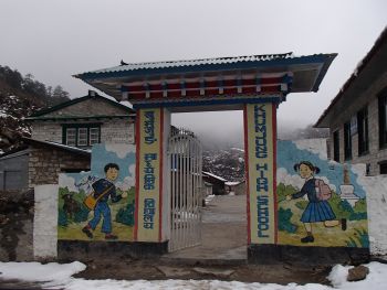クムジュン村には高度順化を兼ねて2泊しました。まずは静かな村の風景です。 クムジュンハイスクール 校内にあるヒラリーの銅像 サイバーカフェ パン屋さん兼カフェ クムジュンの立派なお寺 マニ車の列この寺にはイエティの頭皮が(?)あり、若干の寄付で拝観できます。 夕暮れ時に学校の前の空き地でバレーボールに興ずる青年たち