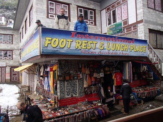 ディンボチェでは馴化のために3泊したのでいろいろな体験ができ、荷造りも無いので寛げました。でも高度馴化のために近くのナガルジョンピークに登りました。高度は4700程度でしょうか。 ナガルジョンピークにて グリーンのウエアはインドネシアのアルデシール 4340mの村のカフェでこの品揃えは立派!! どういう訳かこんなものがロッジにありました