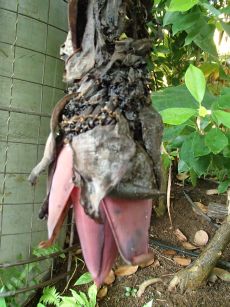 ポットマムの菊類やちいさな秋バラ、秀明菊など定番の花の中で珍しい花を見つけた。花の美術館には年間3回くらいは訪れているのだが、花が咲いているタイミングに合わなかったのだろう、風鈴仏僧華以外は初めて見た。いろいろな花があるものだと感心してしまった。 バナナの花 飛行機草 フウリンブッソウゲ ベンガルヤハズカズラバナナはよく食べるけど花を見たのは初めて。そもそもバナナに花があるなんて思いもしなかった。花というイメージとはかけ離れていて、分厚い舌のような花びら(?)が下をむいて咲いている。飛行機草も模様がプロペラのようでおもしろく、縞模様がなかなかモダンだった。