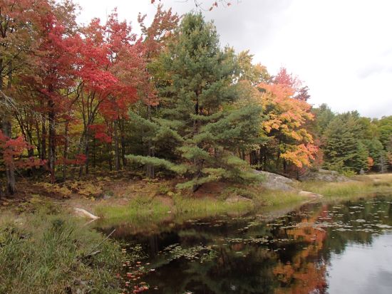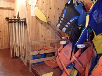 アルゴンキンはカヌーが存分できることでも有名な地だという。確かに無数の湖が点在しているのでカヌー好きな人には堪らない環境だろう。特にカヌーに興味はなかったが、せっかくなので、カヌー体験をした。水際にはカヌーで必要な用具を完備している小屋があるのでそこで、ジャケットやオールなどを身につける。 現地ガイドの指導のもと、カヌーに乗り込む。バランスを崩すとすぐひっくりかえいそうな気がしてこわごわだった。 しかし思ったより簡単で2,3種類の漕ぎ方を指示されるとおりにしていくと、転覆もせず順調に前進した。水がかなり重いのではと予測していたが、水は軽かった。けっこう遠くまで漕ぎ出せて、カーブも曲がれるようになった。静かな湖を優雅に(?)すばらしい景色を眺めながら時間や世間を忘れて漕ぐカヌーは楽しかった。