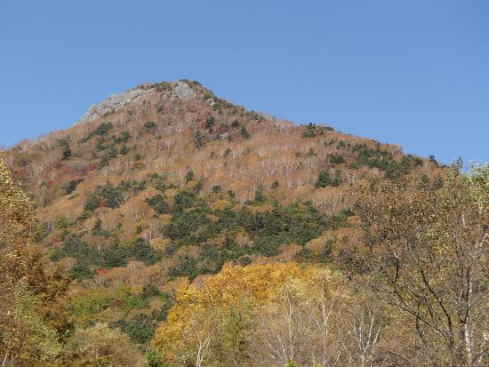 10月22日乾徳山(2031m)に出かけた。この山は私の住む千葉県から行くのは時間的になかなか厳しい。朝、最寄り駅の塩山に停車する特急あずさが限定されていて遅い時間しかない。塩山から登山口に入るバスが1日3便しかない上、帰りの最終バスは4:06分。登山に要する時間は休憩含まずで約7時間。計算上ではかなり無理だったが、たまには頑張って歩いてみようと思い、出発した。案の状、時間が足りず、いつになく真面目に歩いた。徳和バス停9時50分出発→銀晶水→国師ヶ原→扇原→鎖場→山頂→道満尾根→徳和バス停3時20分着黙々と歩き、みんなを追い越して国師ヶ原までくるとやっと乾徳山が左手に姿を現してくる。 国師原からの乾徳山 広々とした広場のような国師原からまっすぐ直上すると銀色に波打つススキが美しい扇原に出た。月見岩があり山ガールが岩頭でおしゃべりしている。 扇原のススキの波 月見岩 背後に富士山が大きく迫るこの辺りから紅葉が際だって鮮やかな色で目を奪われ、思わず「おお!!」と声がでる。 なおも登ると第一の鎖場が登場。登山道全体が岩場っぽくなってくる。しばらく登ると頂上直下、天狗岩と呼ばれる第二の鎖場が現れる。岩は慣れているので平気だったが、何と鎖場の順番待ちが10人ほどいて困惑。時間がないのでサクサクと昇りたいと思っていたのに割り込む訳にもいかず結局ここで30分以上ロスタイム。休憩時間が消えた。 天狗岩の鎖場 山頂にて 結局山頂で10分ほど奥秩父や富士山の展望を楽しんだあと、すぐ下山にかかった。帰りは道満尾根を下った。尾根筋の紅葉が美しく秋の山を堪能した。